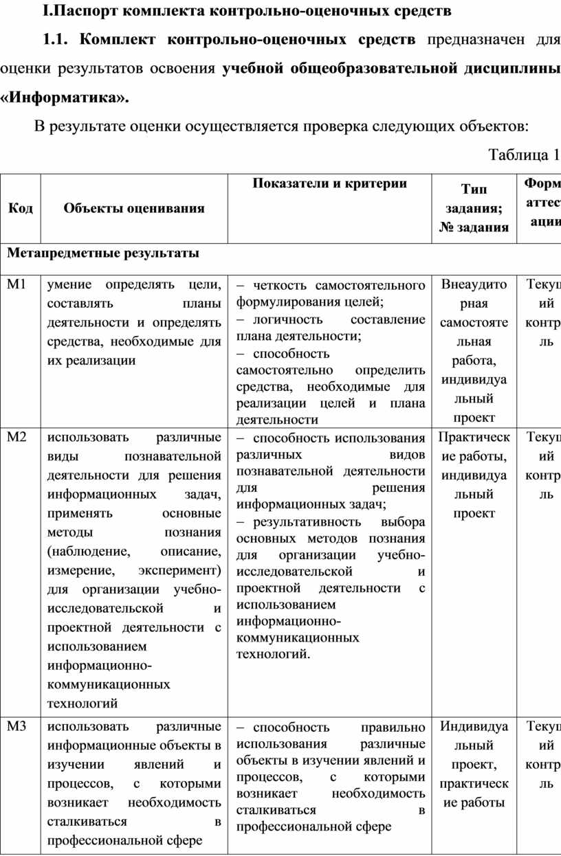 1.1. Комплект контрольно-оценочных средств предназначен для оценки результатов освоения учебной общеобразовательной дисциплины «Информатика».