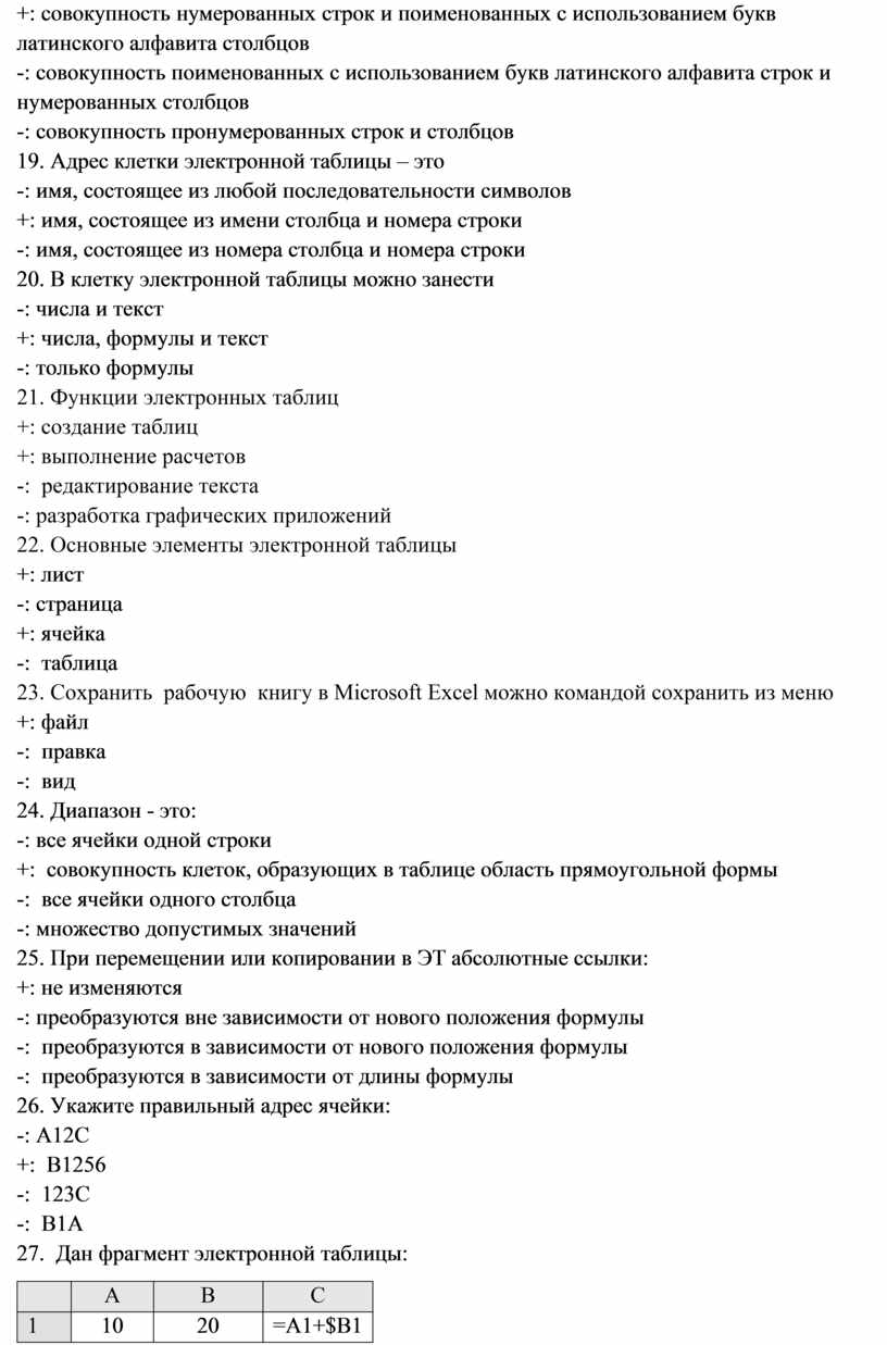 +: выражение, которое начинается со знака «=» и может включать адреса ячеек, числа, знаки арифметических операций, специальные символы, а также функции