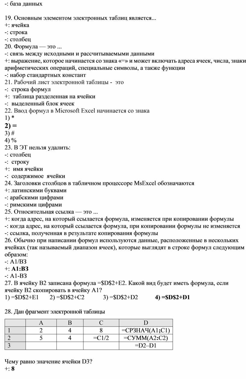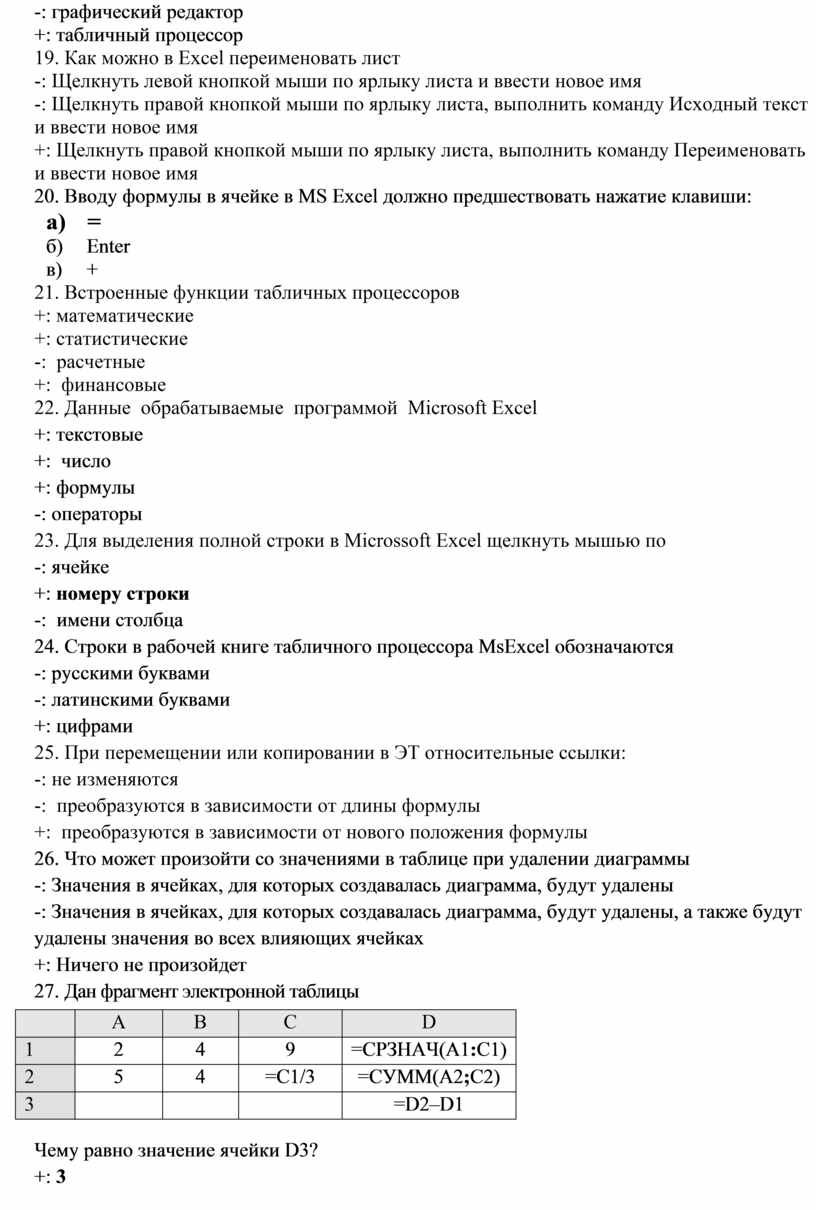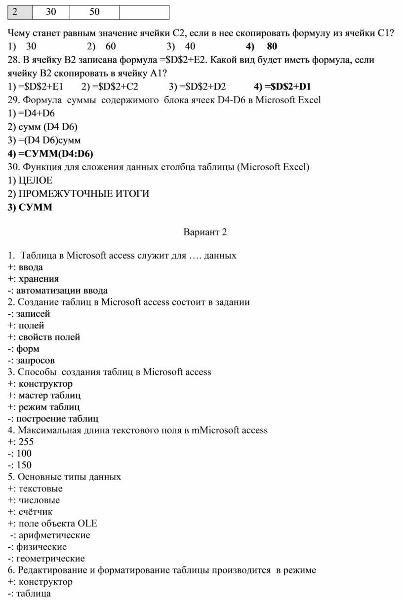 27. В ячейку В2 записана формула =$D$2+E2. Какой вид будет иметь формула, если ячейку В2 скопировать в ячейку А1?