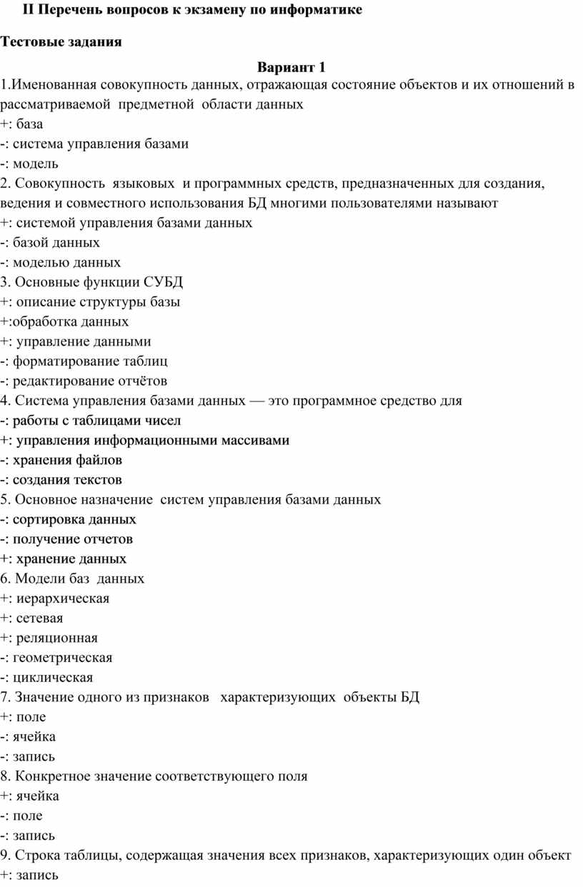 Формой промежуточной аттестации по дисциплине «Информатика» является экзамен.