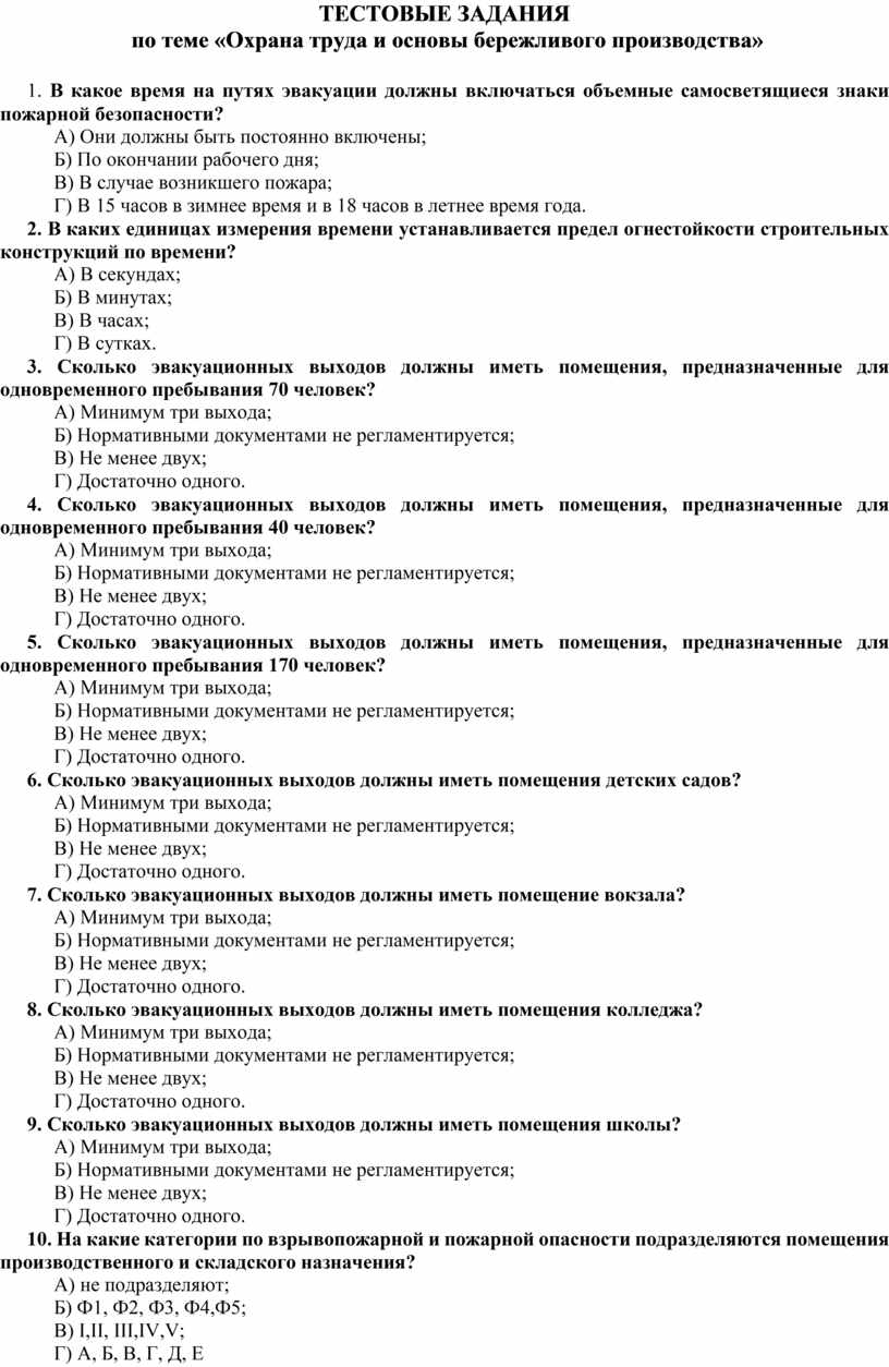 5. Сколько эвакуационных выходов должны иметь помещения, предназначенные для одновременного пребывания 170 человек?