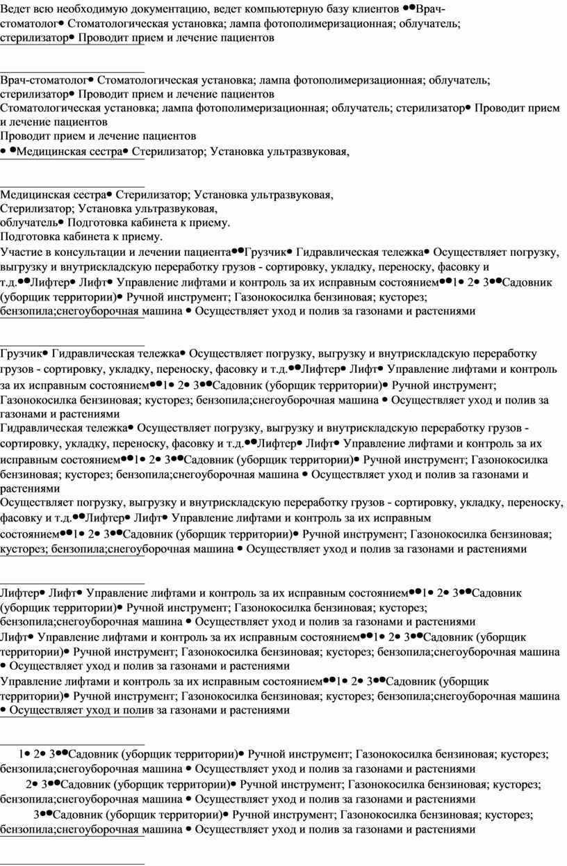 -проведение производственных инструктажей и мероприятий по выполнению правил охраны труда, техники безопасности и производственной санитарии, эксплуатации оборудования и инструмента |