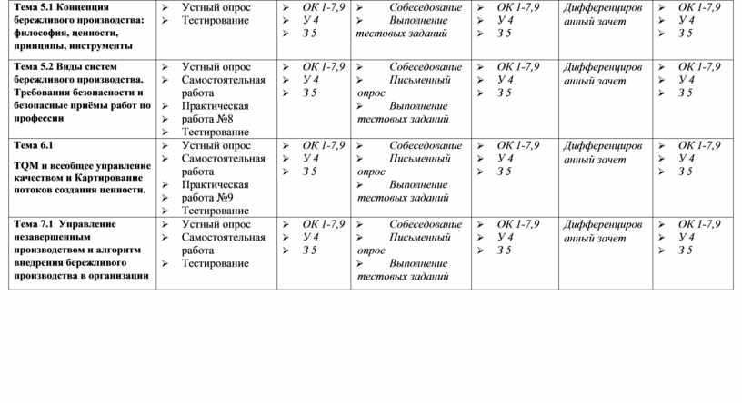 У4 применять инструменты бережливого производства в соответствии со спецификой бизнес-процессов организации/производства.