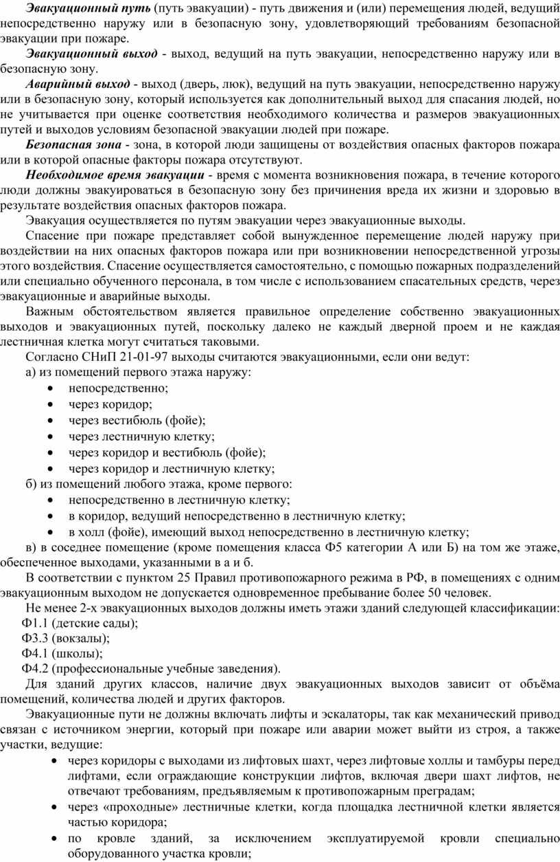 13. Путь движения людей, ведущий непосредственно наружу или в безопасную зону носит название ……