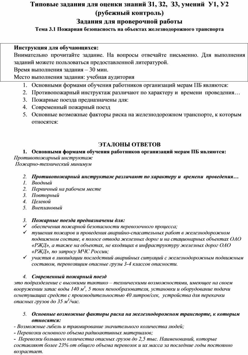 ü обеспечения пожарной безопасности перевозочного процесса;