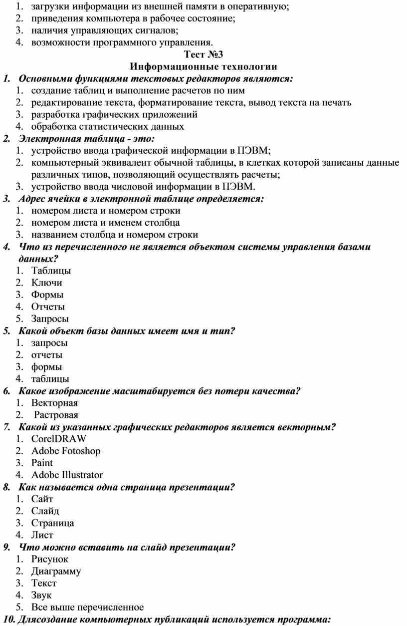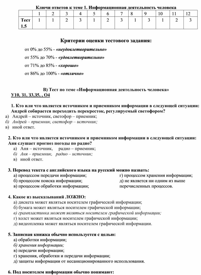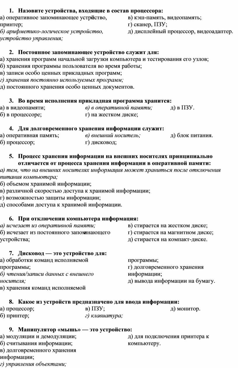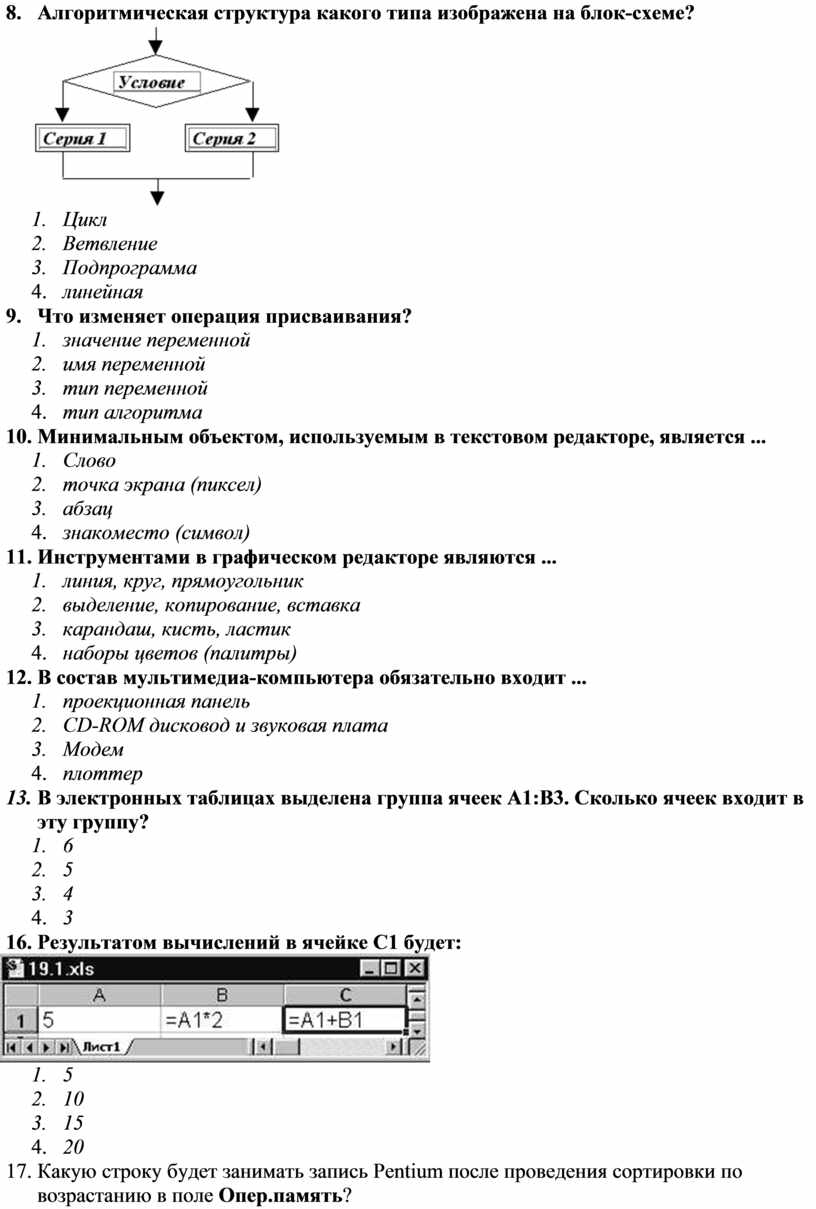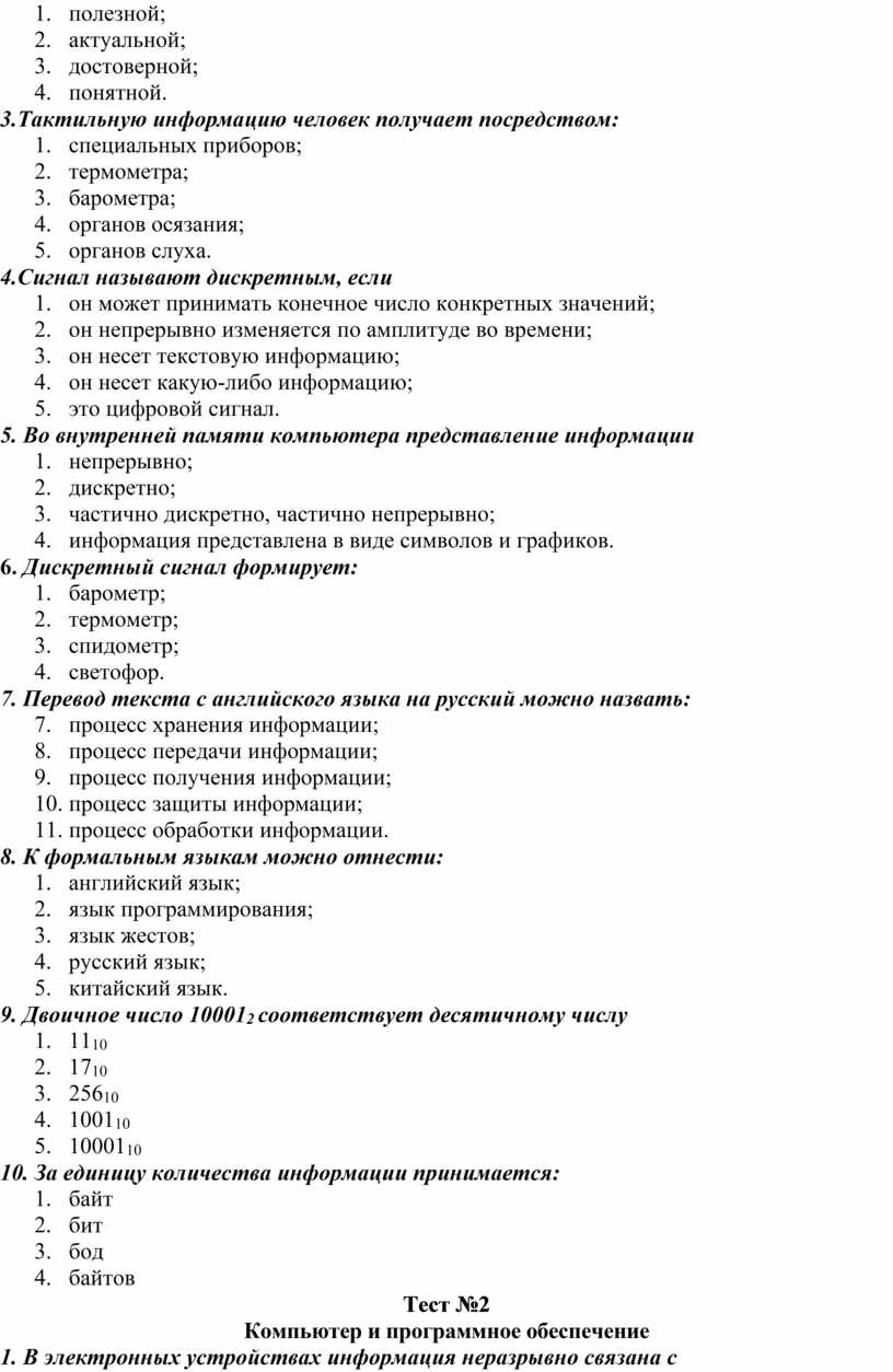 Оборудование: компьютер с установленным программным обеспечением (программа тестирования, пакет MS Office)
