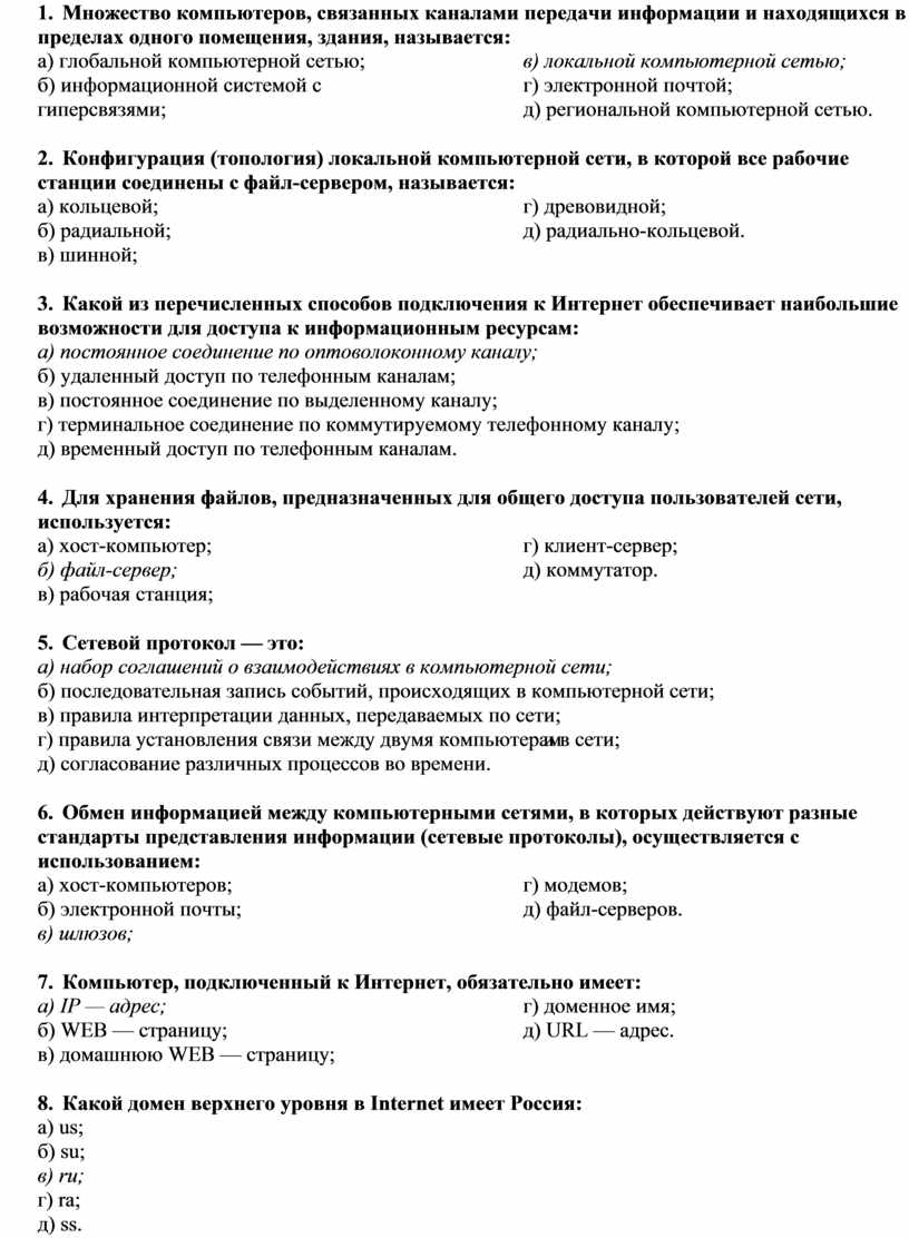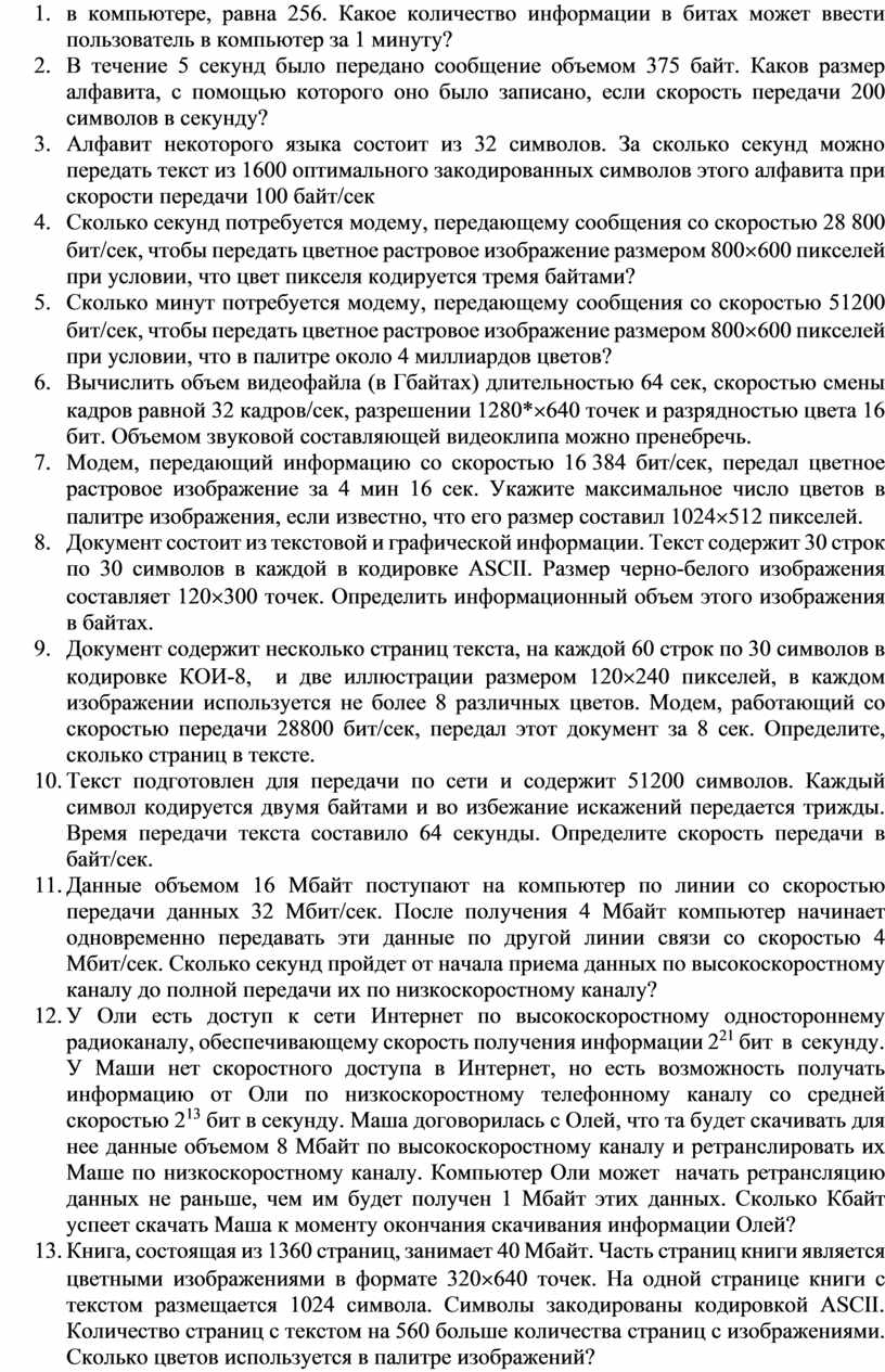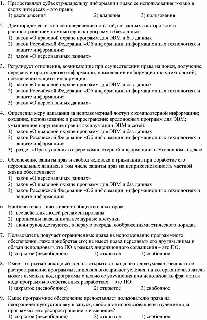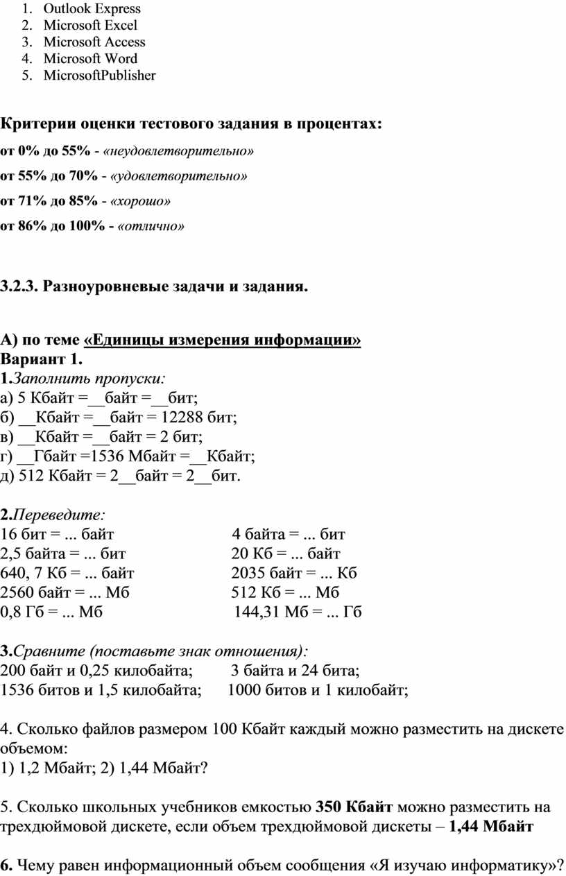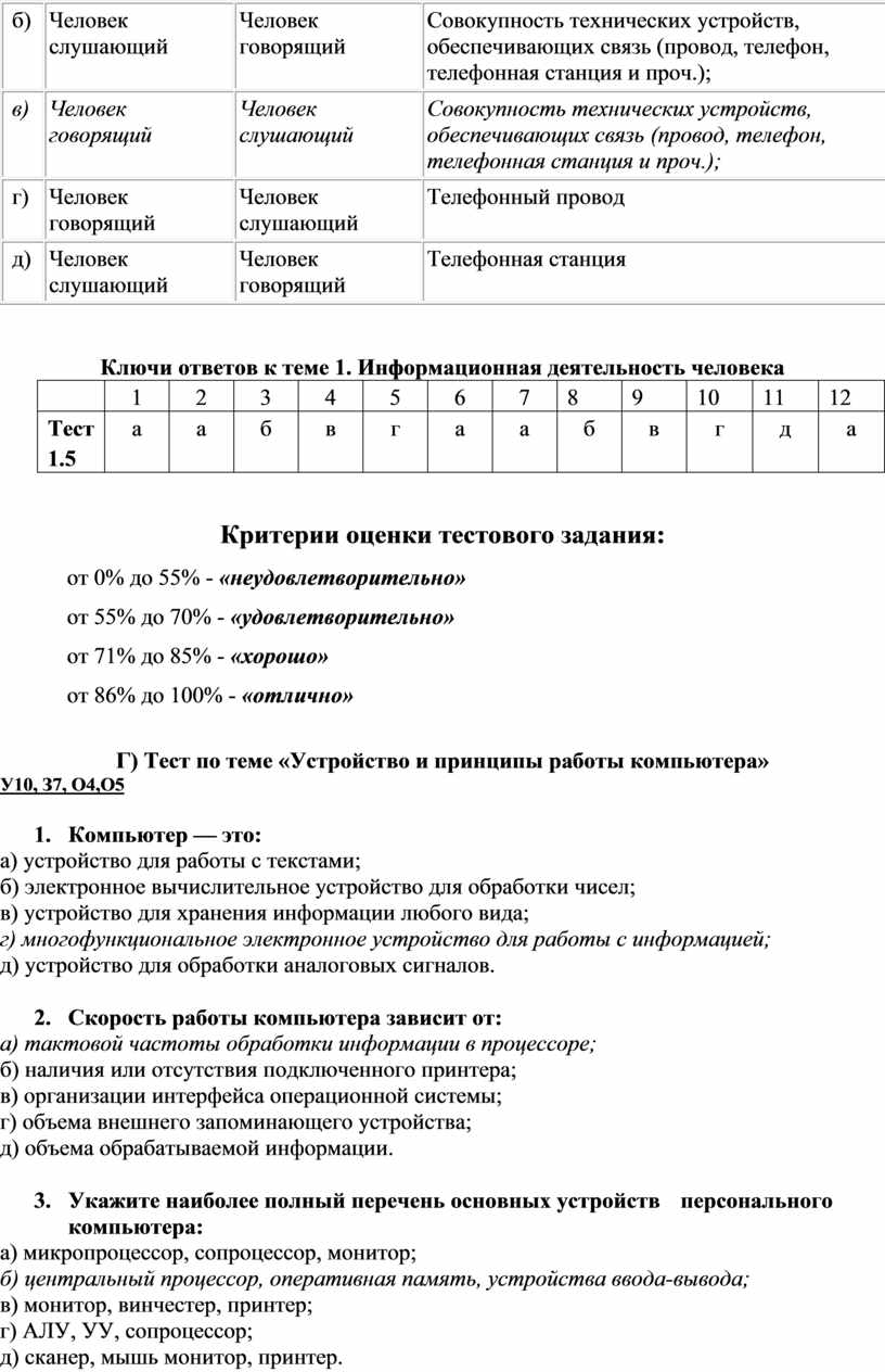 Оборудование: компьютер с установленным программным обеспечением (программа тестирования, пакет MS Office)