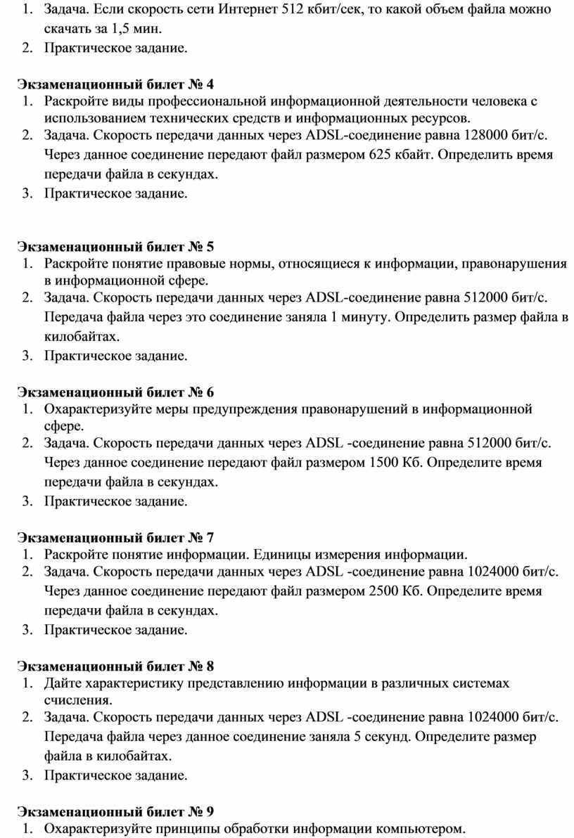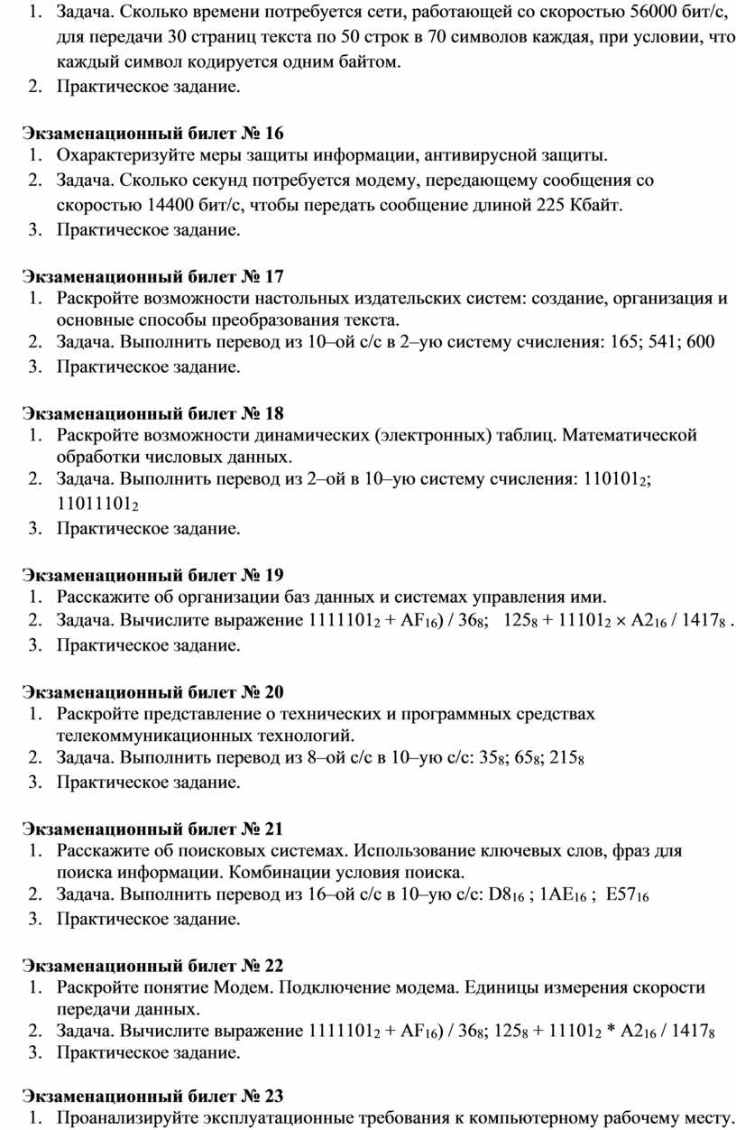 Количество вариантов билетов с практическими заданиями – 24 (по 3 задания)