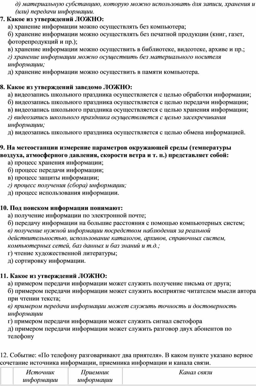 У2. Распознавать информационные процессы в различных системах З1. Различные подходы к определению понятия «информация» |