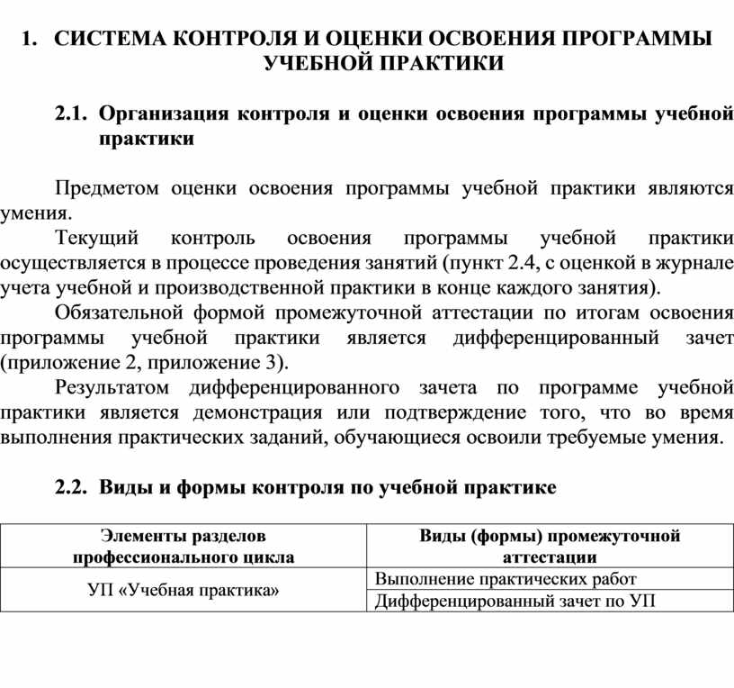 2.2. Виды и формы контроля по учебной практике