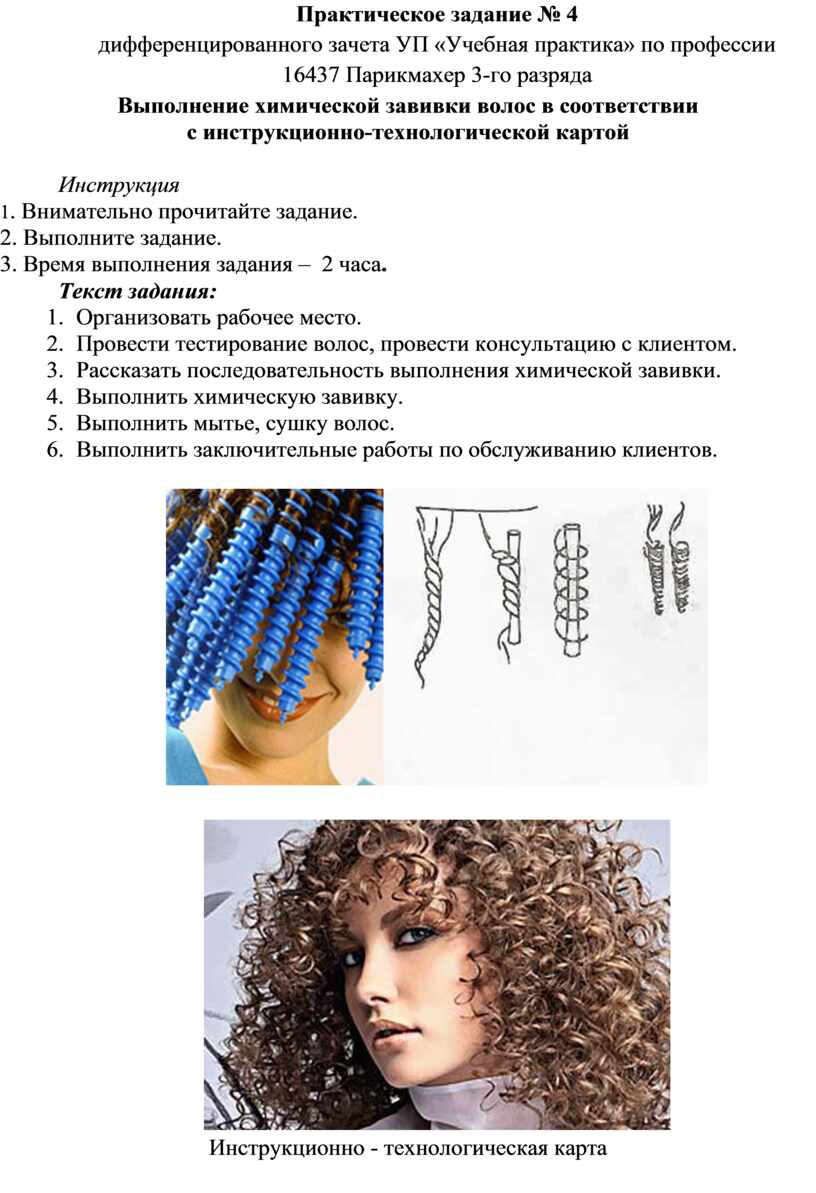 Выполнение химической завивки волос в соответствии с инструкционно-технологической картой |