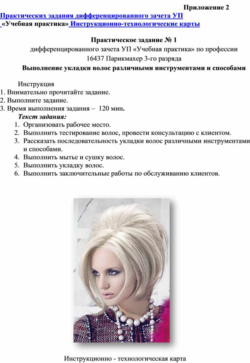 практических заданий дифференцированного зачета УП «Учебная практика» по профессии 16437 Парикмахер 3-го разряда