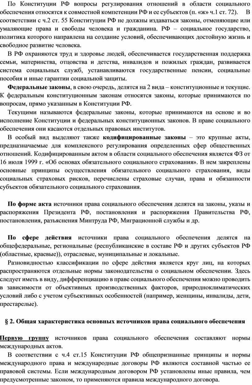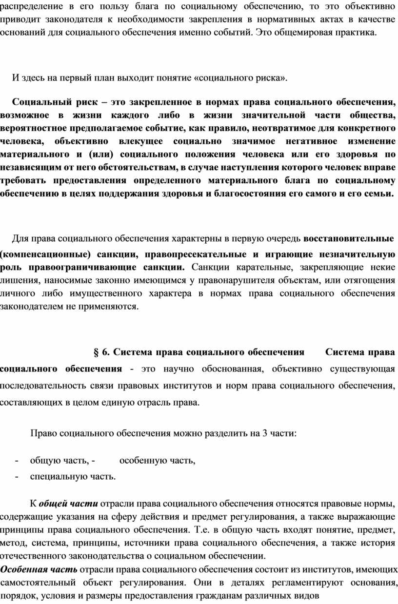 § 6. Система права социального обеспечения Система права социального обеспечения - это научно обоснованная, объективно существующая последовательность связи правовых институтов и норм права социального обеспечения, составляющих в целом единую отрасль права.