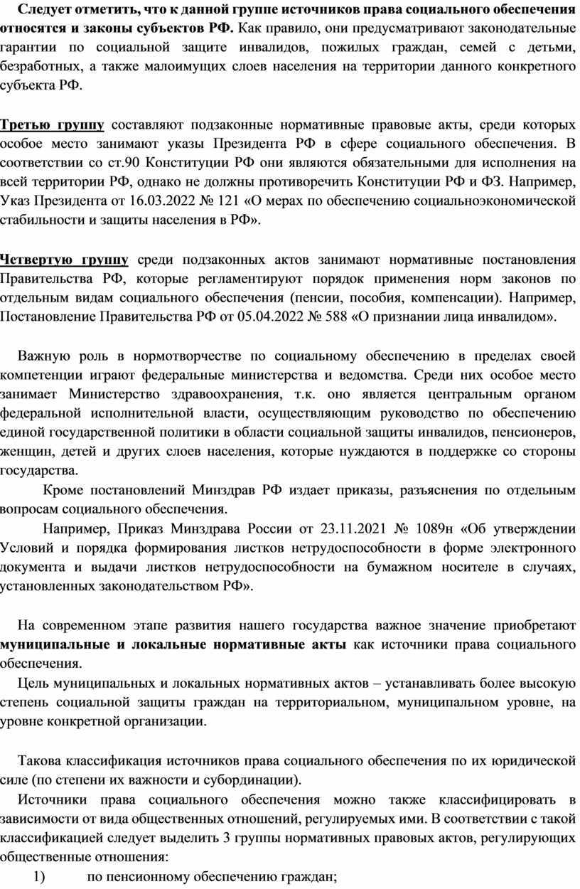 На сегодняшний день предмет права социального обеспечения составляют несколько групп общественных отношений: