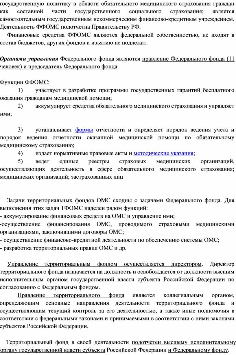 Задачи территориальных фондов ОМС сходны с задачами Федерального фонда. Для выполнения этих задач ТФОМС наделен рядом функций: