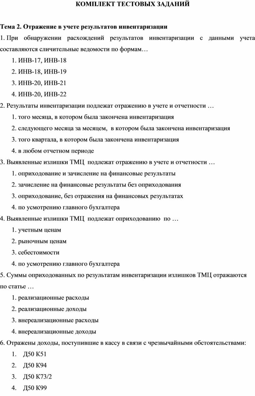 Тема 2. Отражение в учете результатов инвентаризации