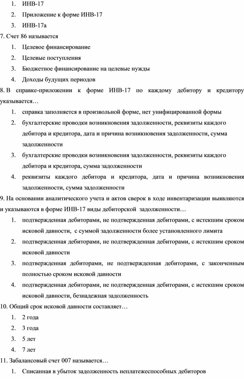 9. На основании аналитического учета и актов сверок в ходе инвентаризации выявляются и указываются в форме ИНВ-17 виды дебиторской задолженности…