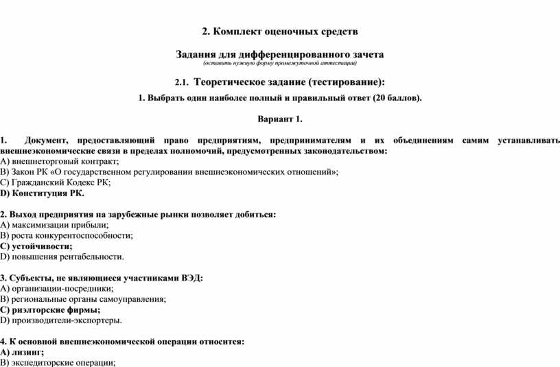 Комплект оценочных средств предназначен для оценки результатов освоения дисциплины «Внешнеэкономическая деятельность»