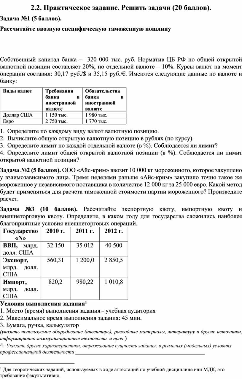 2.2. Практическое задание. Решить задачи (20 баллов).