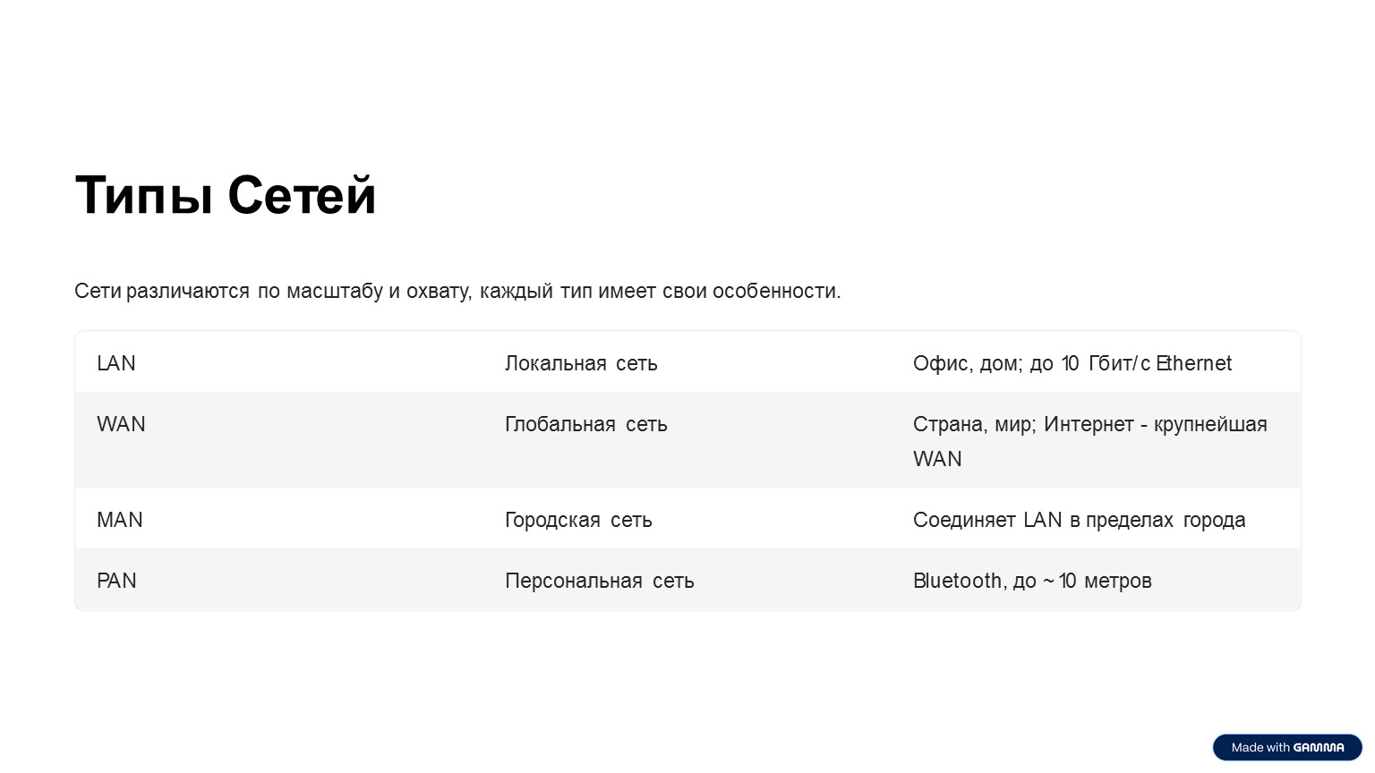 Сети различаются по масштабу и охвату, каждый тип имеет свои особенности.