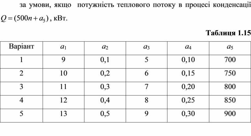 кожному ряді та продуктивність конденсатора за умови, якщо потужність теплового потоку в процесі конденсації