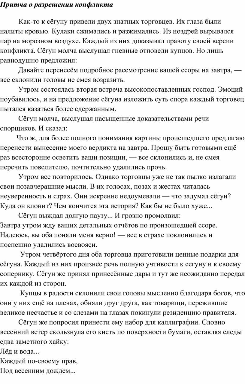 Притча о разрешении конфликта