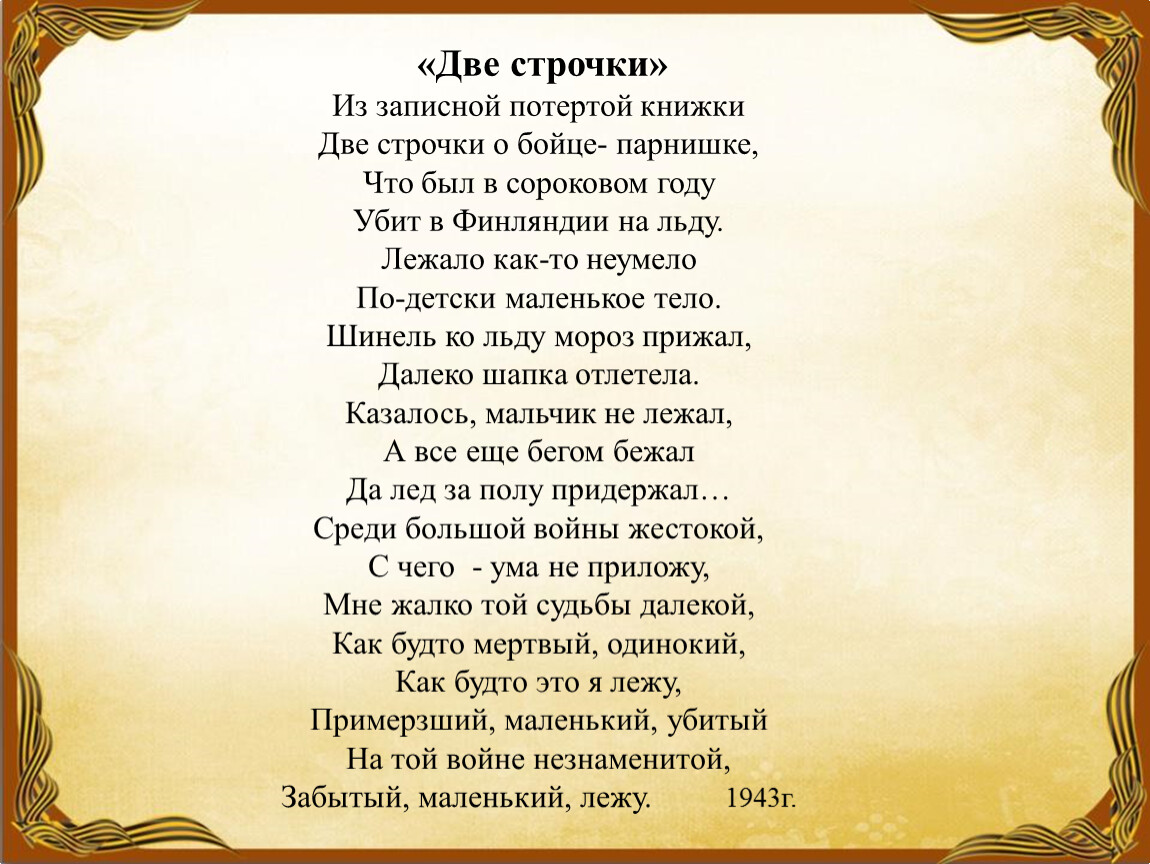 Две строчки о бойце- парнишке,