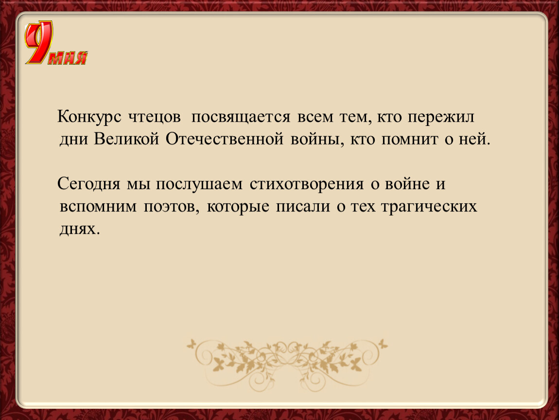 Конкурс чтецов  посвящается всем тем, кто пережил