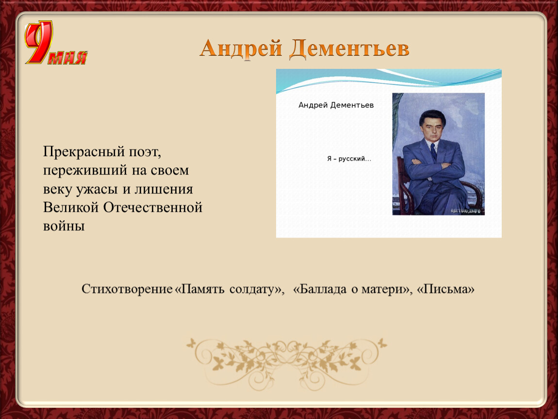 Стихотворение «Память солдату», «Баллада о матери», «Письма»
