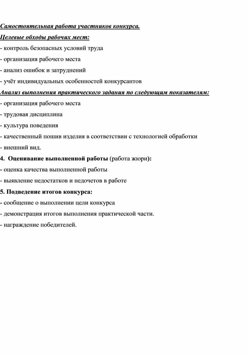 - участники конкурса должны обладать знаниями охраны труда, основ технологии,
