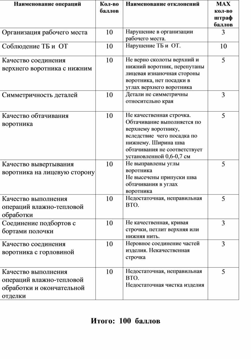 - качественный пошив образца в соответствии с технологией обработки;