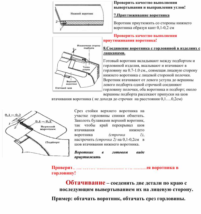 Проверить качество выполнения втачивания воротника в горловину!