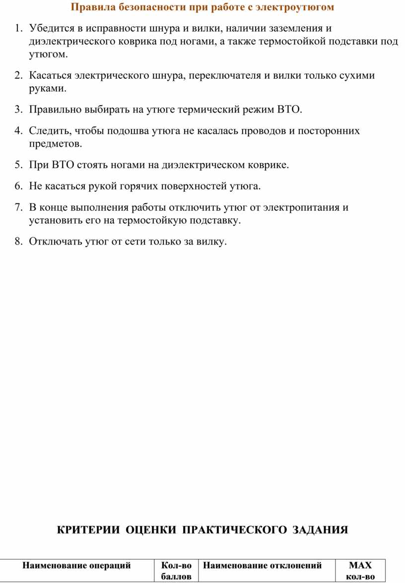 Правила безопасности при работе с электроутюгом