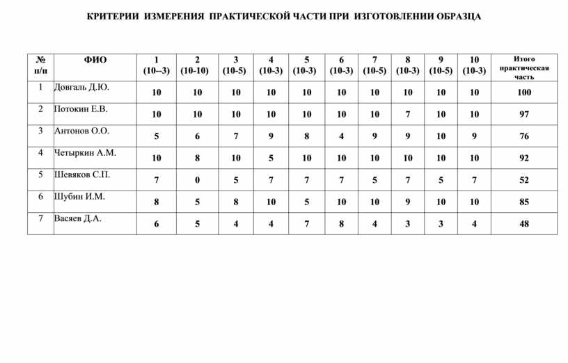 КРИТЕРИИ ИЗМЕРЕНИЯ ПРАКТИЧЕСКОЙ ЧАСТИ ПРИ ИЗГОТОВЛЕНИИ ОБРАЗЦА