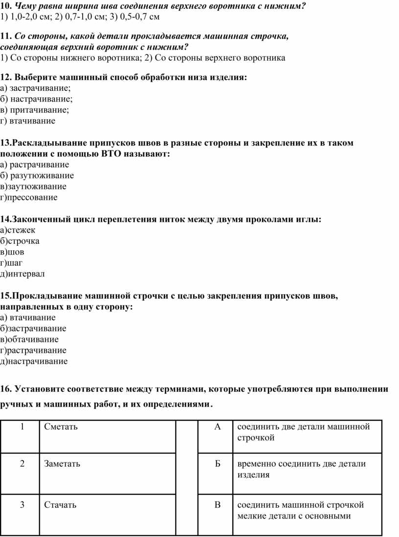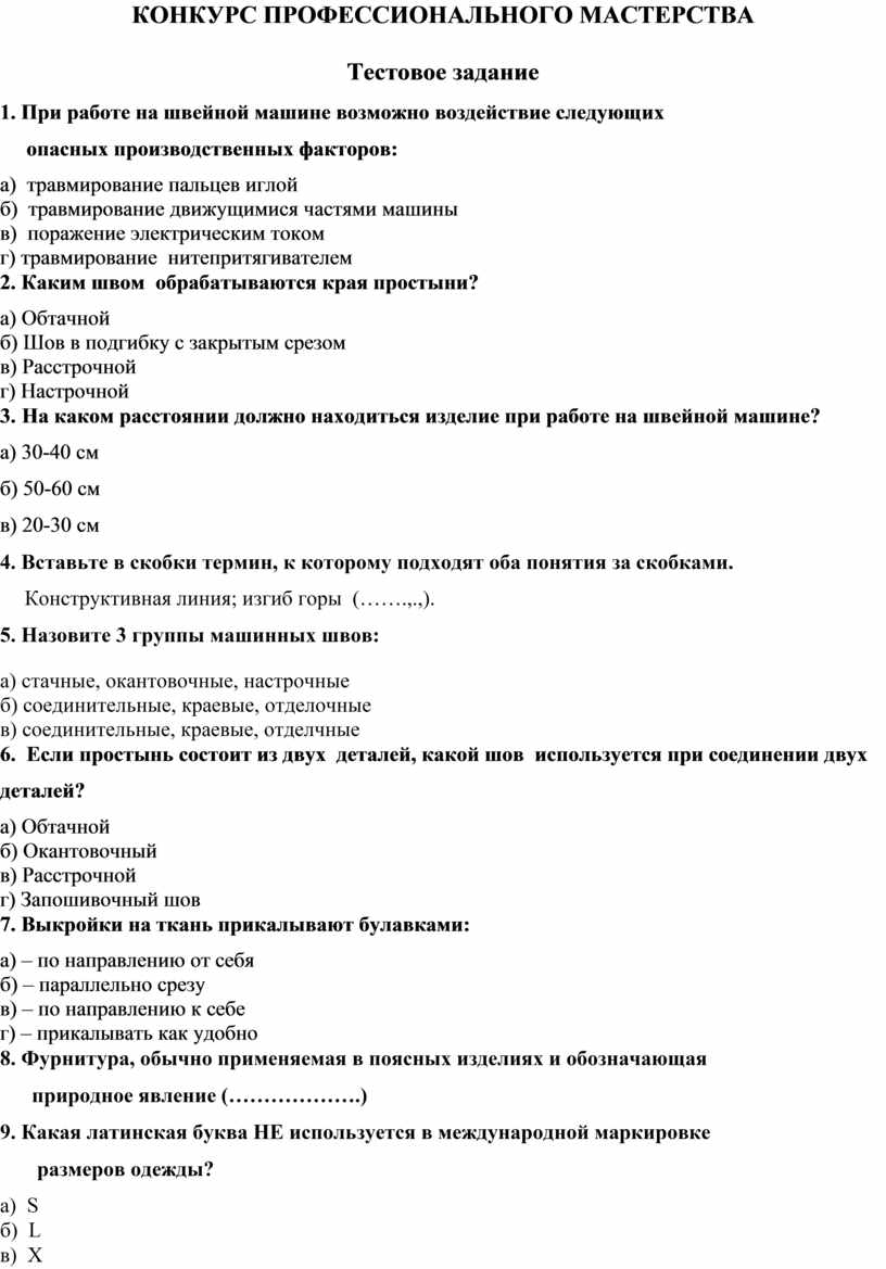 Теоретическая часть заключается в тестовой проверке знаний обучающихся: по охране труда, материаловедению, технологии изготовления швейных изделий, оборудованию. Время выполнения тестовой проверки знаний – 30 минут.