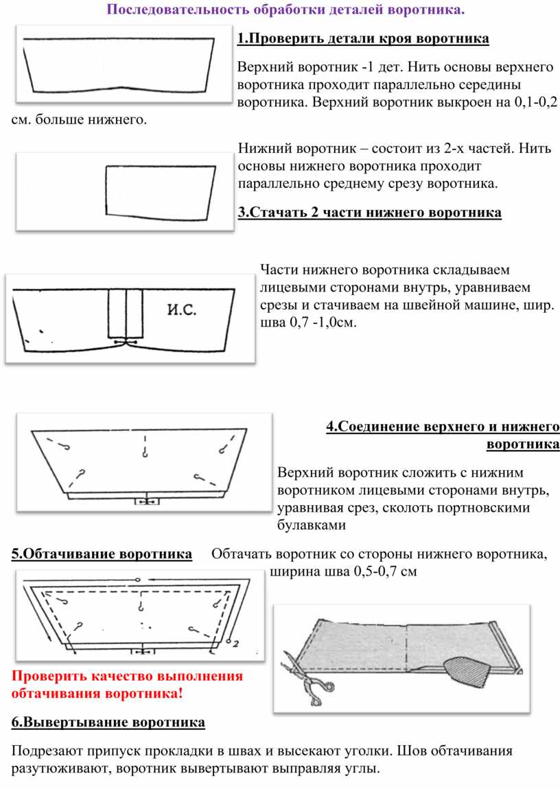 - технологическая последовательность обработки воротника и втачивания его в горловину