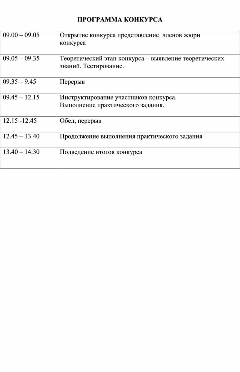 ПЛАН ПРОВЕДЕНИЯ КОНКУРСА