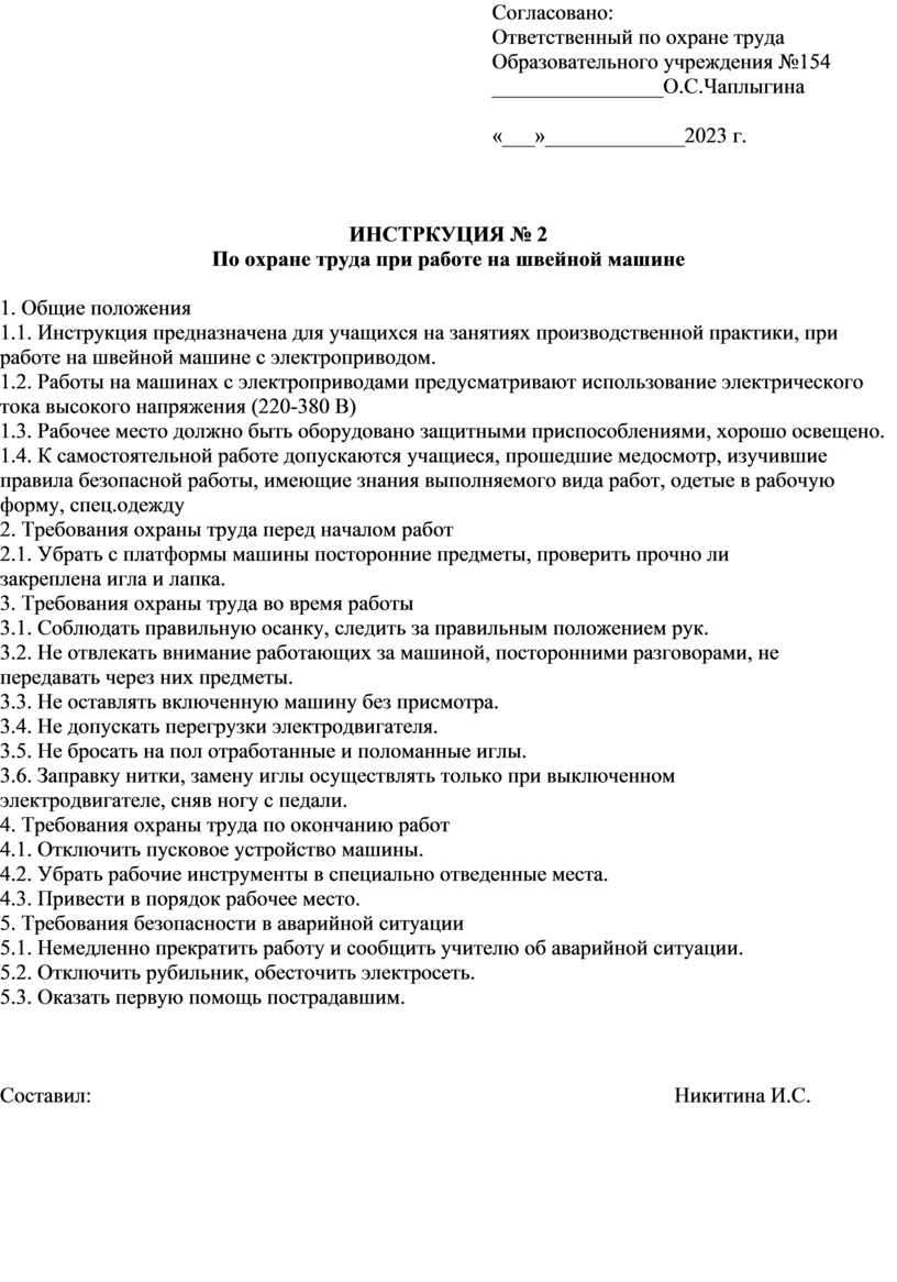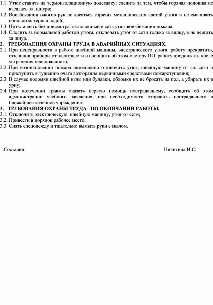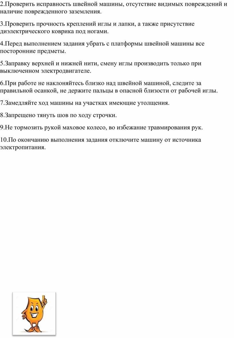 Правила безопасности при работе на швейной машине