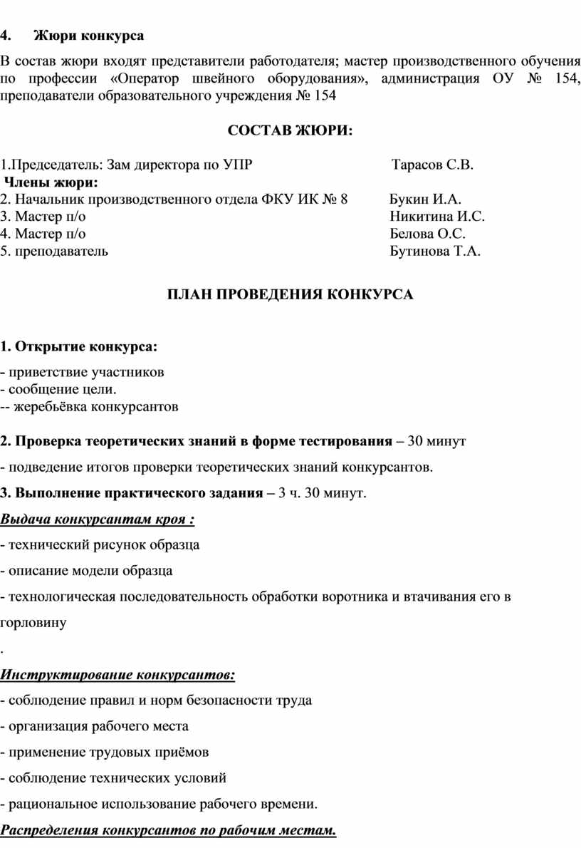 В состав жюри входят представители работодателя; мастер производственного обучения по профессии «Оператор швейного оборудования», администрация ОУ № 154, преподаватели образовательного учреждения № 154