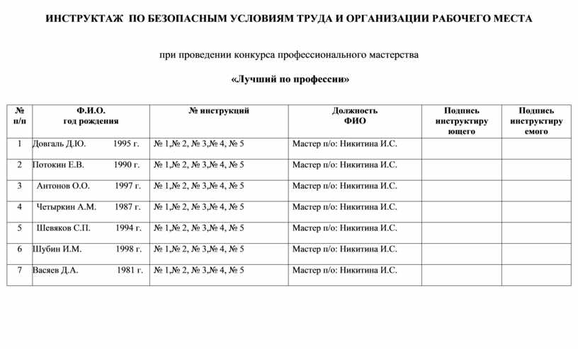 Инструктирование конкурсантов: