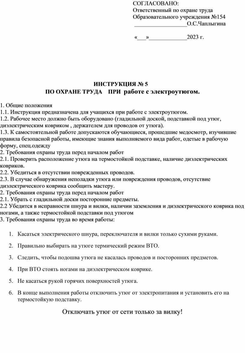 7. В конце выполнения работы отключить утюг от электропитания и установить его на термостойкую подставку.