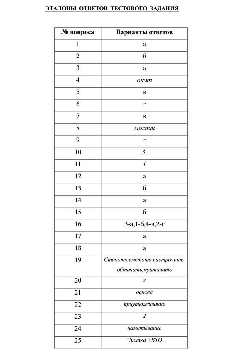 Тестовое задание состоит из 25 вопросов.