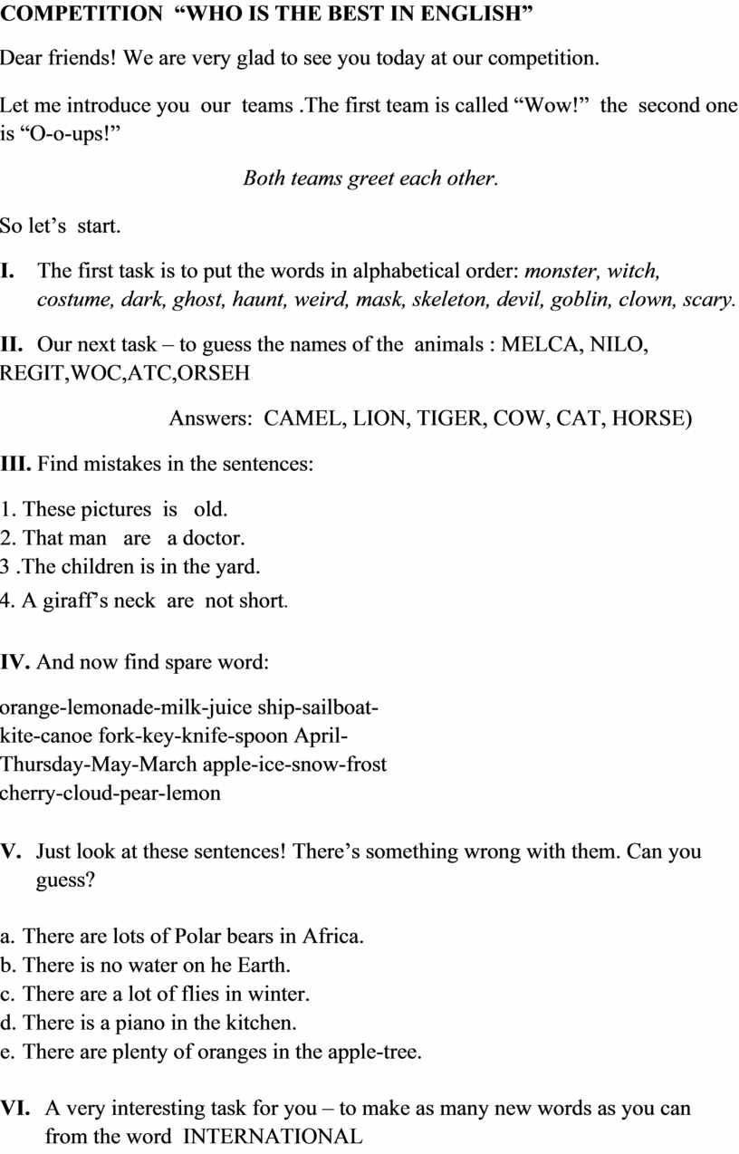 COMPETITION “WHO IS THE BEST IN ENGLISH”