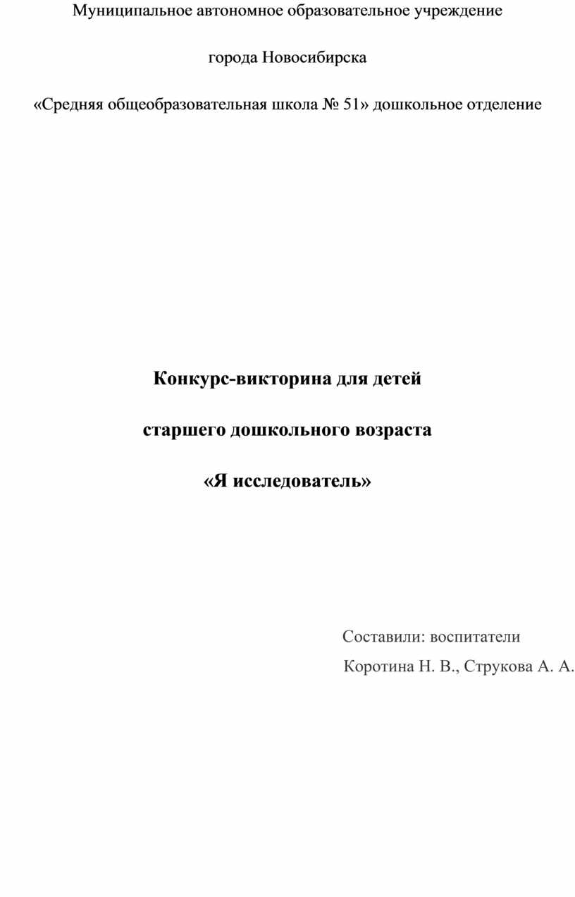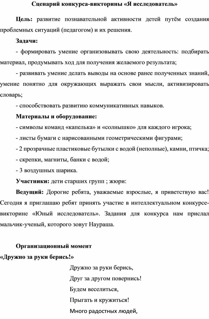 Сценарий конкурса-викторины «Я исследователь»