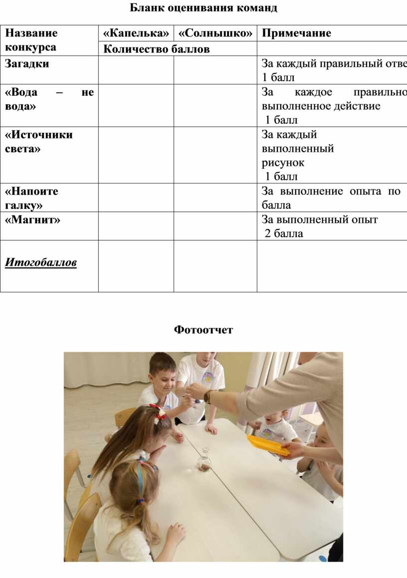 Бланк оценивания команд