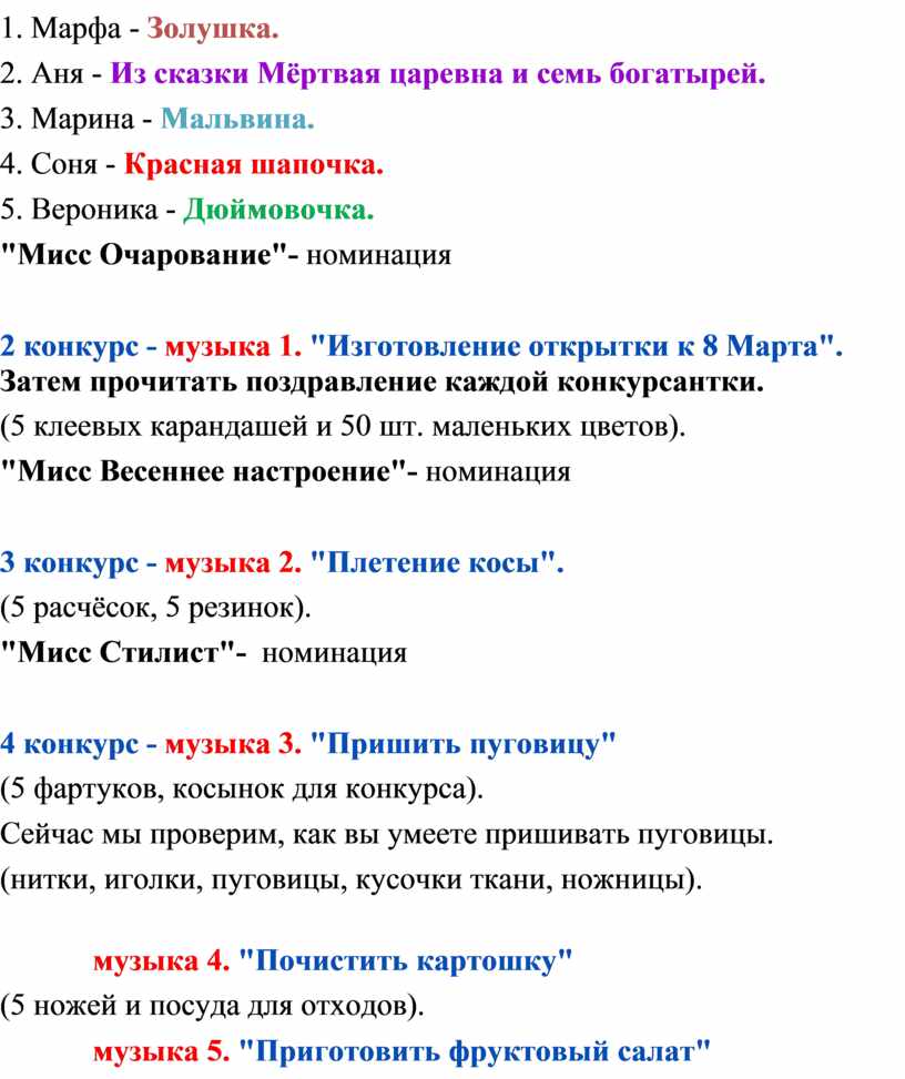 2 конкурс - музыка 1. "Изготовление открытки к 8 Марта". Затем прочитать поздравление каждой конкурсантки.