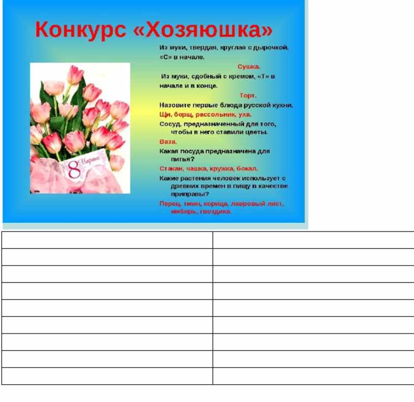Задание: каждой команде по очереди будут заданы вопросы, девочкам необходимо дать правильные ответы. Если одна команда затрудняется, право ответа переходит к другой.
