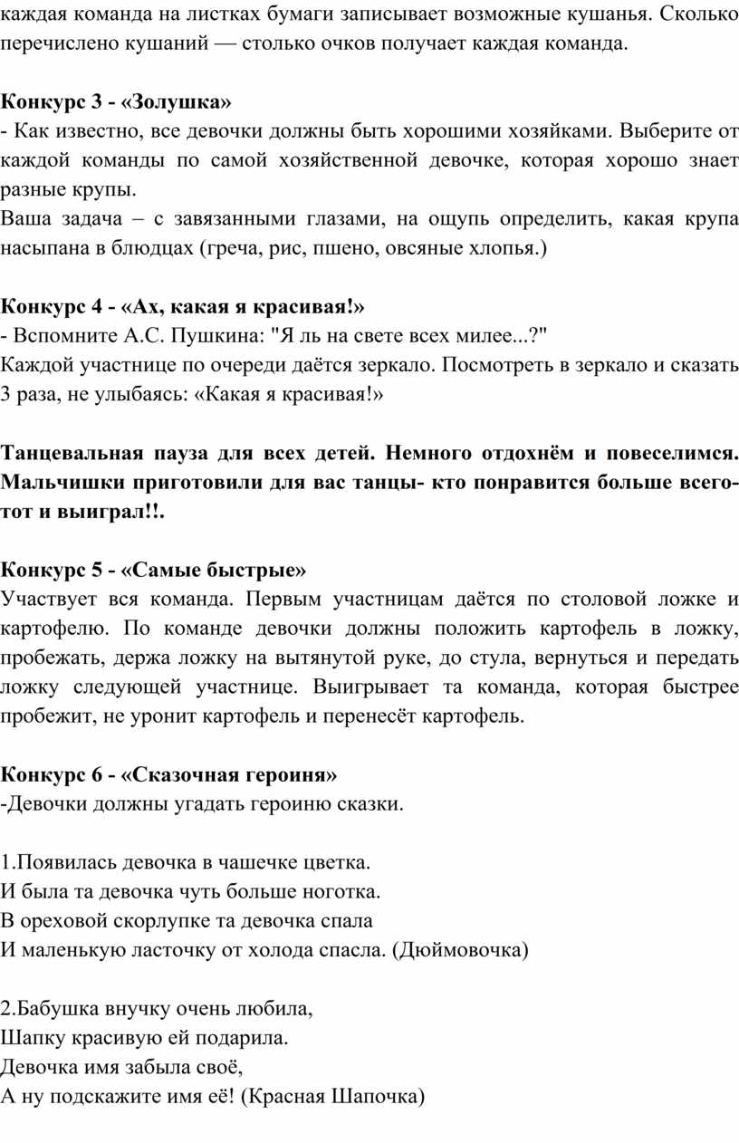- Как известно, все девочки должны быть хорошими хозяйками. Выберите от каждой команды по самой хозяйственной девочке, которая хорошо знает разные крупы.