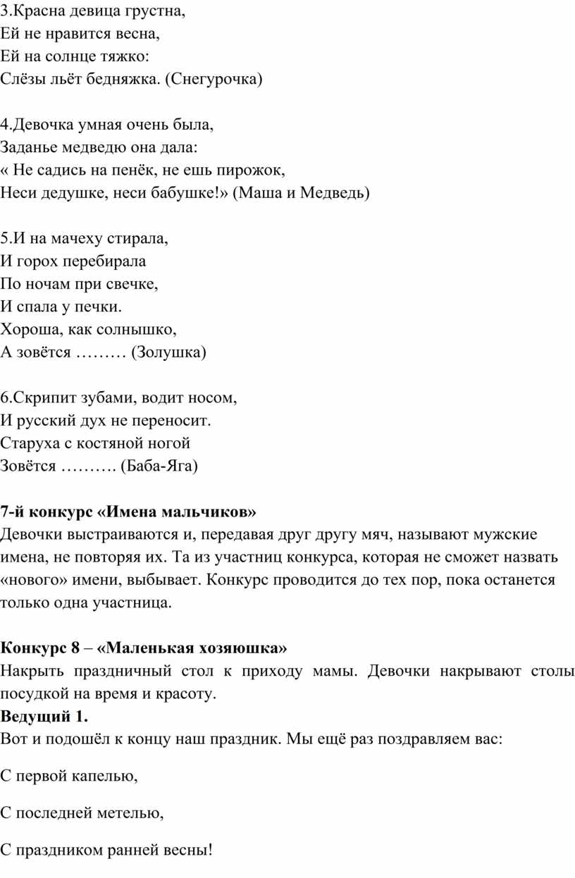 повторяя их. Та из участниц конкурса, которая не сможет назвать «нового» имени,