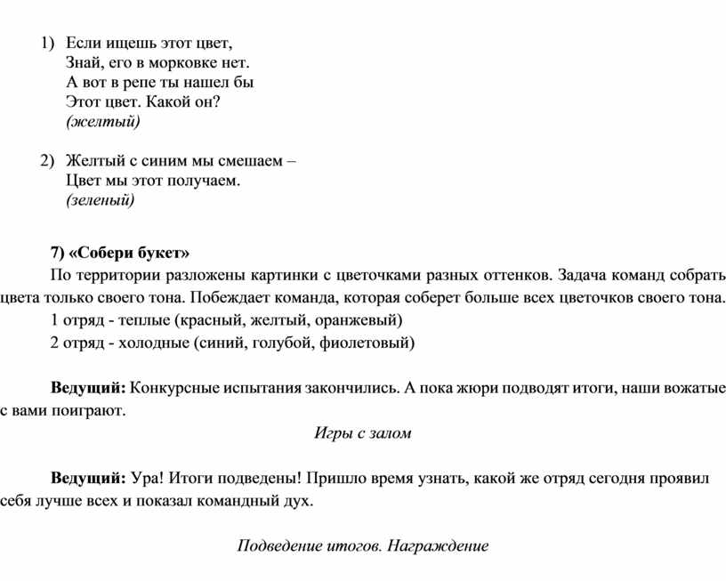 Ведущий: Конкурсные испытания закончились. А пока жюри подводят итоги, наши вожатые с вами поиграют.